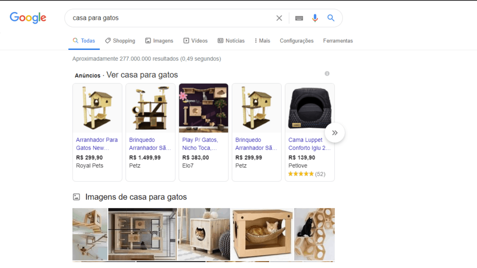 Veja na figura abaixo, uma pesquisa específica sobre um produto e como os resultados na primeira página são importantes: