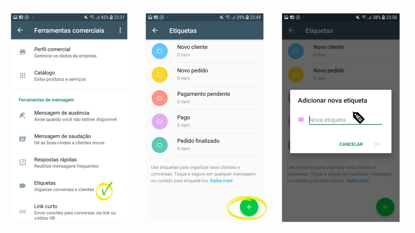 Os marcadores ou etiquetas tornam mais fácil organizar seus contatos ou bate-papos para que você possa encontrá-los novamente com facilidade.