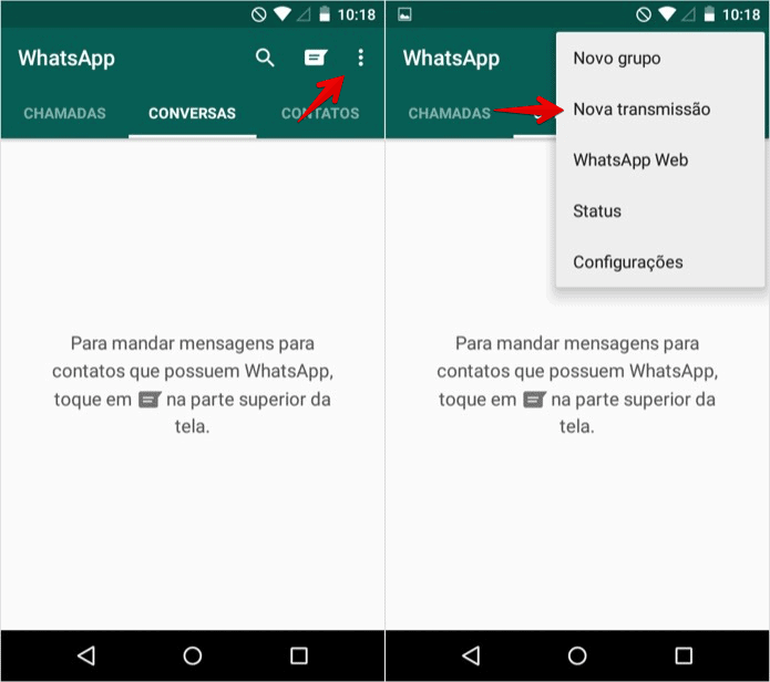 Veja na figura abaixo como criar a sua lista de transmissão.