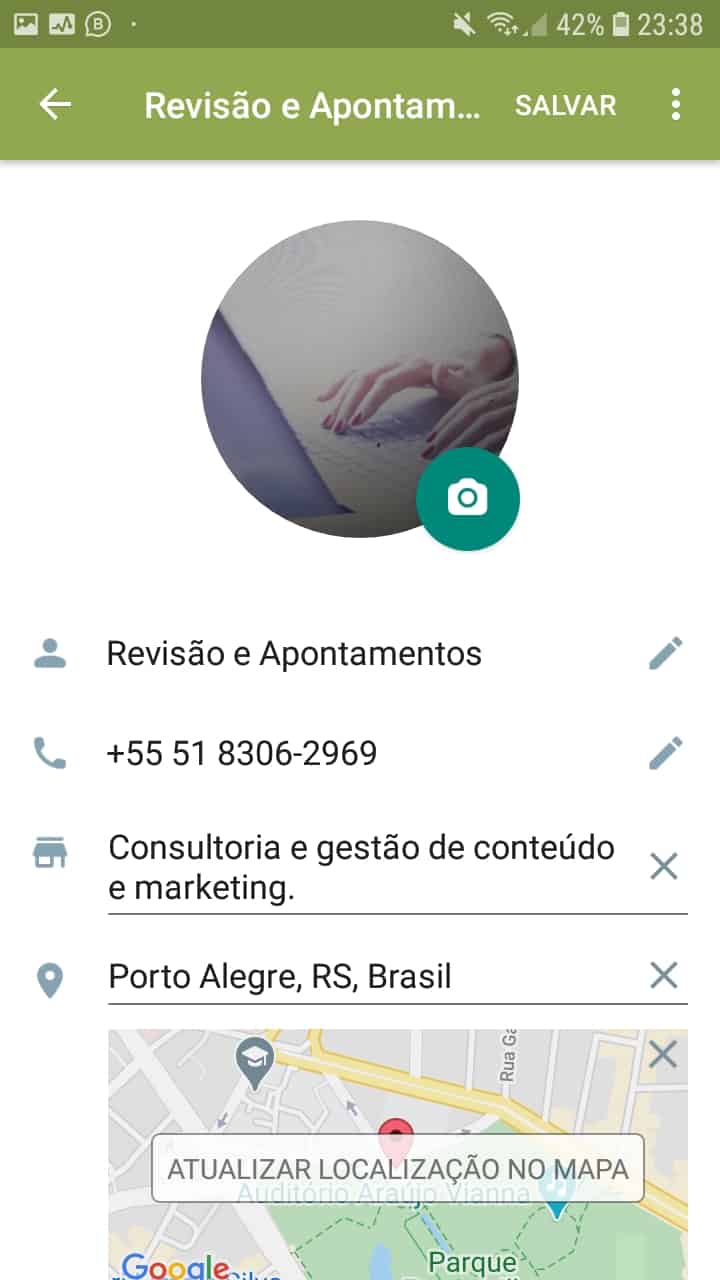 A sua principal vantagem está nos recursos extras e bastante úteis para torná-lo compatível com os negócios, a partir da configuração de um perfil comercial completo com o endereço da empresa, e-mail e link do site.